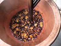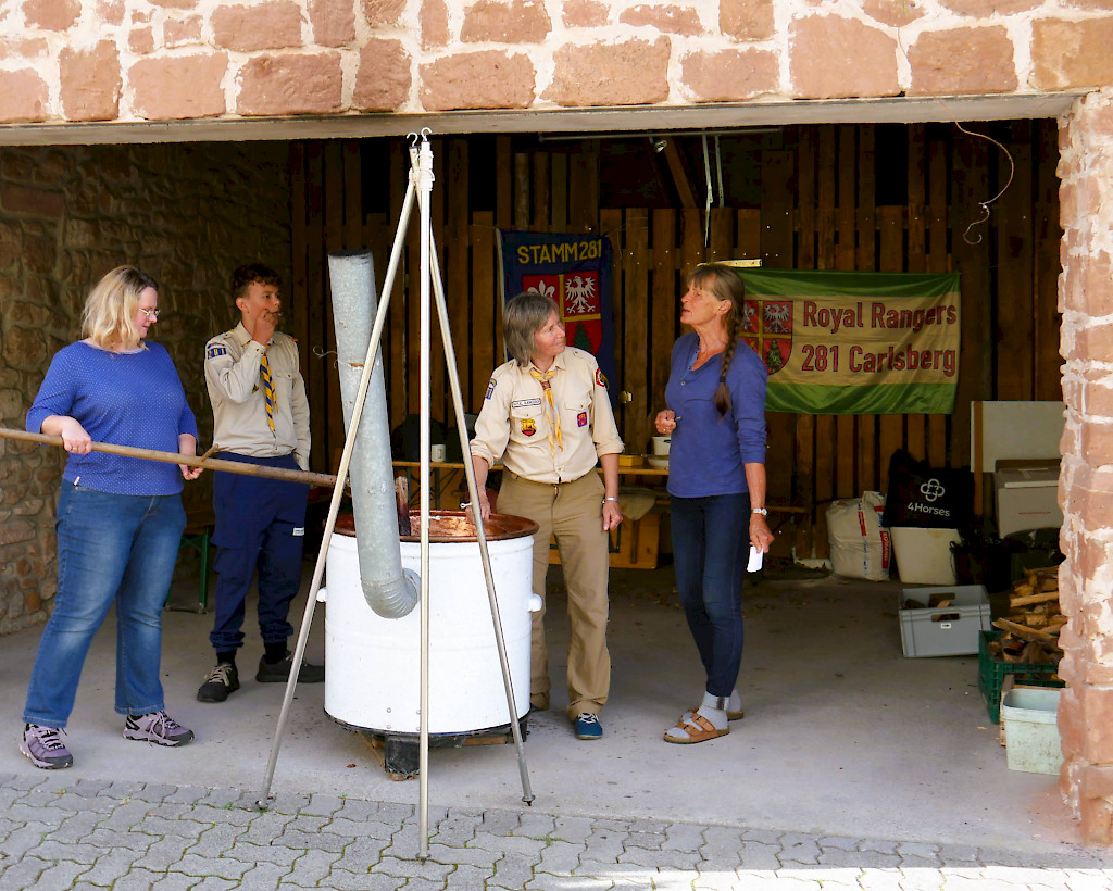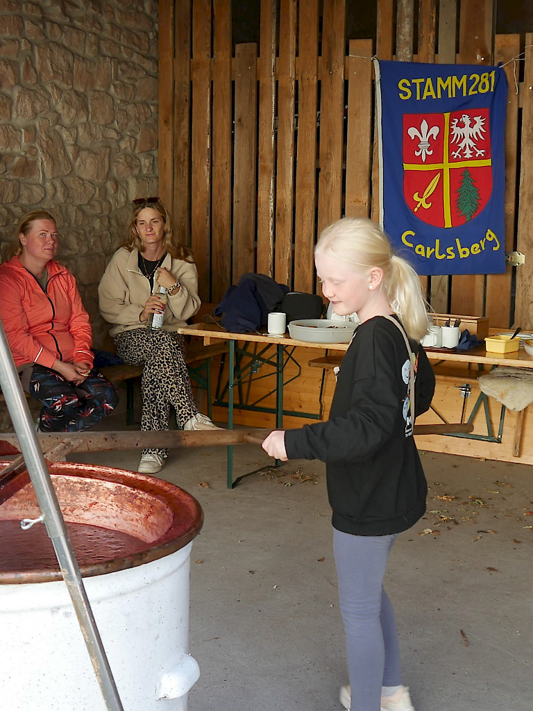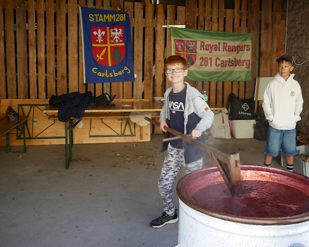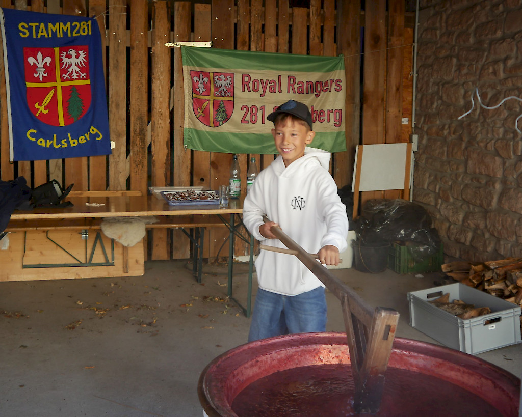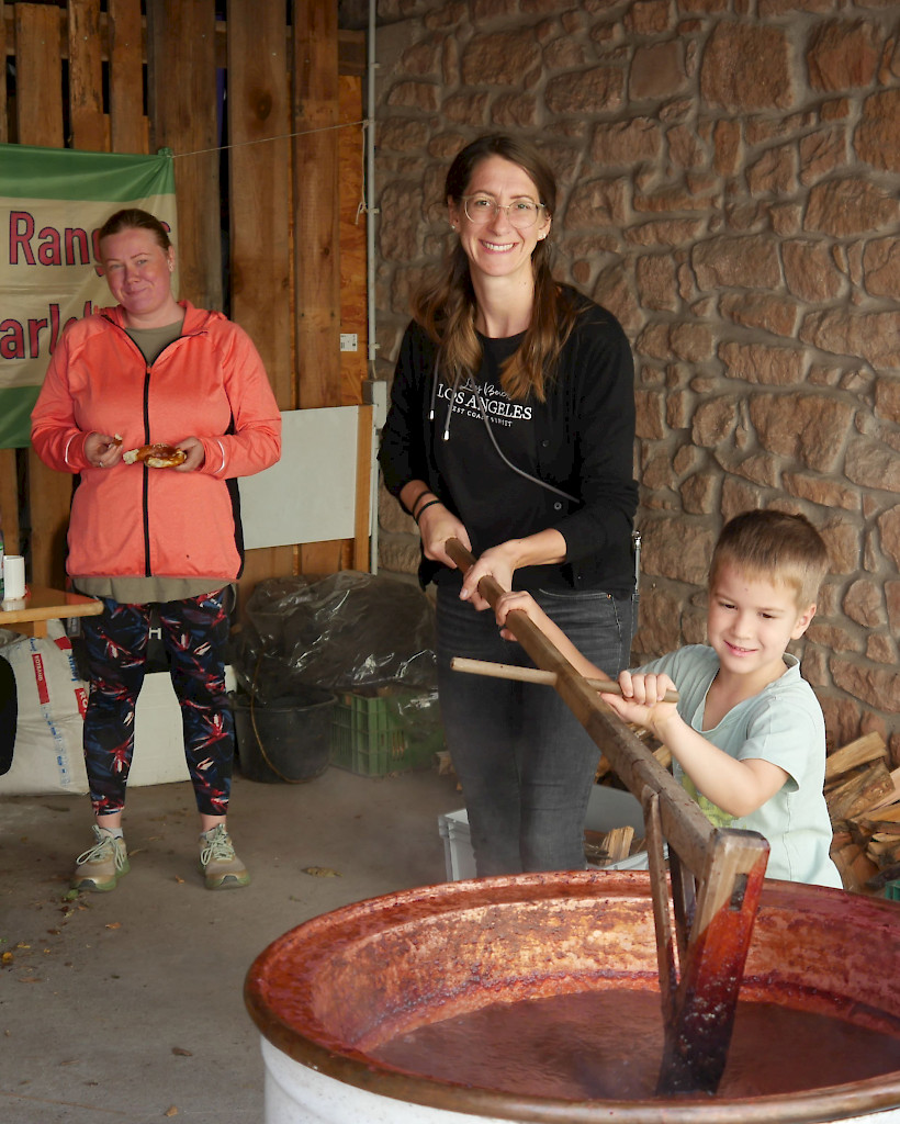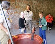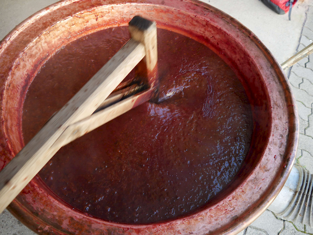 Am 13.09. kochten wir in einem alten Kupferkessel 100 kg Pflaumen und füllten nach 10 Stunden rühren 130 Gläser köstlichen Latwerge für unseren Adventsmarkt ab.